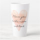 Valentine's Day latte mug gift - Love you to the moon and back with watercolor heart design. Elegant template design with custom message or name. Stylish script typography. Coral pink colour. Large cone shaped coffee cup. Also available in small size. Great for home, office, school etc. Cute present for wife, girlfriend, husband, boyfriend, partner, couple etc.