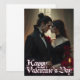 A romantic, atmospheric picture showing the intense connection between two lovers on a mystical Valentine's Day. The elegant man in a dark suit and the woman in a stunning black dress stand close to each other, surrounded by red roses and the warm glow of a candle. The gloomy, gothic backdrop emphasises the timeless and passionate atmosphere of this special moment of love.