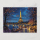 Valentine's Day Paris at Night with Eiffel Tower- Holiday Postcard