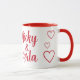 This is a mug with a red and white St. Valentine's Day theme, and room for names and a photo, with red hearts for decoration. The mug can be personalised however you like. Please message MineByDesign for help with custom designs!