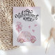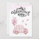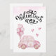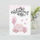 Valentine's Day Watercolor Pink Retro car Holiday Card.