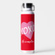 Valentine's Day Pink Heart Kisses Hugs XOXO Red Water Bottle