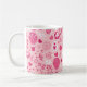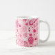Valentine's Day Pink Hearts Love Bear Flowers. Hot air ballon, bow, teddy bear, heart, pink flowers pattern on a white coffee mug, beverage cup.