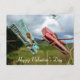 Valentine's Day postcard with two old and weary clothespin as friends on an outdoors clothes line in a tropical setting in Cuba.