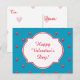 Valentine's Day Postcard, Aqua, Red Hearts, You Customise. Purchase a bunch for school children to hand out!