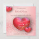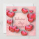 Happy Valentine's Day festive sparkle glitter light pastel pink rose background illustration with red realistic 3D hearts and white frame. Text written in modern script letters.