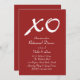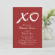 A bright white "XO" decorates this invitation on a deep red background, making it chic and elegant, and perfect for the Valentine's Day or Christmas Wedding.