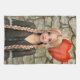 3D digital render of a beautiful teenager girl in a retro dress holding a balloon in a heart form on a stone wall background. Perfect Valentine's Day gift