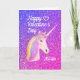 Valentines Day Unicorn Purple Pink Glitter Name Holiday Card