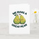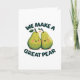 Share a slice of love with this adorable 'We Make a Great Pear' folded greeting card. Perfect for Valentine's Day, it features two cute pears with cheerful faces and a sweet pun that celebrates a perfect match. The card's interior is blank, waiting for your personalised sentiment to complete this thoughtful and charming token of your affection. It's the ideal pick for the one who complements you perfectly, just like a pair of pears in a fruit bowl of love."