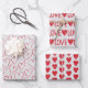 Three different wrapping paper sheets with red and white glitter hearts. Perfect for Valentine's day, her birthday, or weddings.