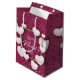 Happy Valentine's Day festive sparkle glitter burgundy dark red background illustration with white realistic 3D hearts and gold foil frame. Text written in modern script letters.