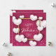 Happy Valentine's Day festive sparkle glitter burgundy dark red background illustration with white realistic 3D hearts and gold foil frame. Text written in modern script letters.