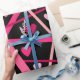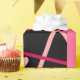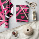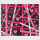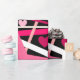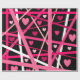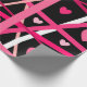 This wrapping paper is covered with hearts and random lines of red, pink, and white on a black background that makes the colours pop.