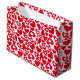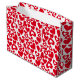 Paper gift bag is shown in a red and white Valentine hearts print.