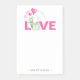 Charmingly customised, these notes are adorned with a delightful top border showcasing watercolor hearts and cacti, alongside the word "love" rendered in soft shades of pink and green. Your name or chosen personalisation gracefully sits at the bottom, in crisp sans serif typography. For coordinating girly designs that complement these notes perfectly, please visit www.zazzle.com/dotellabelle, where elegance meets personal expression.