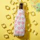 This bottle cooler has a mid-century modern Valentine’s design of scattered red heart mazes on a field of white.
