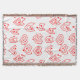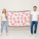 This throw blanket has a mid-century modern Valentine’s design of scattered red heart mazes on a field of white.