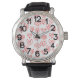 This men's watch has a mid-century modern Valentine’s design of scattered red heart mazes on a field of white.