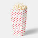 Add a touch of charm to your party with this adorable popcorn and candy favour box! Featuring a seamless red heart pattern on a crisp white background, this favour box is perfect for Valentine's Day, weddings, baby showers, or any celebration filled with love. It's just the right size for holding popcorn, candies, or small treats. Its stylish design makes it a delightful addition to your party table.