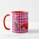 Valentine's Nutcracker with Little Red Truck mug. Featuring the original "Nutcrackers with Little Red Trucks" artwork of Rick Ellinger. The perfect gift for the nutcracker collector, little red truck collector, or for your own collection! Text: "Loads of Love!". Valentine sweetheart candies in truck.