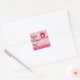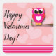 Valentines Owl & Hearts Pink Red Modern Favour Square Sticker