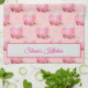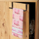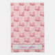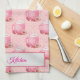 Cute Valentine's Day kitchen towel to give as a gift to Mom, your wife, girlfriend or your bff. The towel is pink in the background and has a pattern of pink coffee mugs with heart shaped cookies at the base. There is a white banner at the bottom lined in a darker pink. You personalize it with person's name inside.