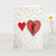 This greeting card shows an off-white background sprinkled with small red polka dots that feel like confetti. On the left, there’s a simple solid red heart that looks like a neat paper cutout with a tiny bit of depth. On the right, a larger red heart is outlined with a fine black lace-like edge, giving it a slightly old-fashioned touch. Inside that heart, a black silhouette shows a couple holding each other close, almost like they’re dancing, and you can spot the woman’s high heels. Their faces aren’t detailed, but their body language clearly reads as tender and close. There’s no text on the front, so the picture does all the talking and leaves room for your own words ❤️. It feels meaningful to give because it balances sweet simplicity with a clear picture of being together 🥰, making it easy to share Valentine’s Day sentiments.