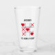 Funny valentine beer glass featuring noughts & crosses with the circles replaced with love hearts, your valentines name, and the cute saying "you won my heart".