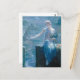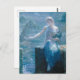 This postcard features 'The Valkyrie's Vigil' by British painter, Edward Robert Hughes (1832–1908). The Norse war goddess is depicted in an ethereal, cool color schemed painting, barefoot, wearing a sheer off-the-shoulder gown, and softly lit from above in a fairy-like way. Her martial aspects are de-emphasized, giving her the appearance of gentleness and softness, despite being the opposite.