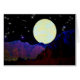 Topping the crest of a sawtooth ridge, we see a delectable valley spread before us, its flanks watered by a sparkling, spring-fed stream. The glowing opalescent moon, rising in an alien sky, illuminates all. We wonder what lies beyond the far mountains... This digital painting was created by me for your visionary pleasure.