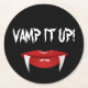 "VAMP IT UP!" Vampire Fangs Halloween Round Paper Coaster