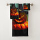 Vampire Cat and Wizard Pumpkin Halloween Surreal Bath Towel Set