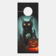 Vampire Cat and Wizard Pumpkin Halloween Surreal Door Hanger