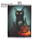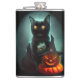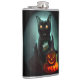 Vampire Cat and Wizard Pumpkin Halloween Surreal Hip Flask