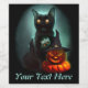 Vampire Cat and Wizard Pumpkin Halloween Surreal Wine Label