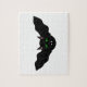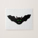 This awesome puzzle features a creepy vampire bat with the face of a cat. The bat is flying with wings outstretched and has the evil green eyes of a creepy cat and some scary white fangs. This creepy chimera is the perfect creature for a haunting Halloween.