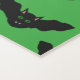 This awesome yoga mat features a creepy vampire bat with the face of a cat. The bat is flying with wings outstretched and has the evil green eyes of a creepy cat and some scary white fangs. This creepy chimera is the perfect creature for a haunting Halloween.