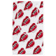 image of red lips with vampire fangs and a drop of blood. lips are a red colour.