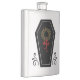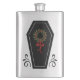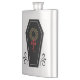 For your gothic holiday decor, this vampire themed design has a coffin with a festive Christmas wreath on it. Black and red colour scheme, holly leaves.