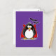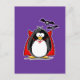 Get a little spooky with this adorable Dracula themed vampire penguin. This penguin features cute little fangs and two smiling bats flying near by. Show off your Halloween happiness!