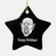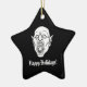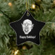 Add some dark charm to your holiday decor with this star-shaped ceramic Christmas ornament, featuring a haunting line drawing of a vampire baring its fangs against a black background, along with the words "Happy Holidays" on the front. On the back, the eerie text "Denn die Todten reiten schnell" (For the dead travel fast) adds a nod to classic horror movies and Dracula lore, making it a perfect piece for those who appreciate the spooky and goth aesthetic. Ideal as a unique Christmas present for the right person, this ornament blends holiday cheer with a chilling supernatural edge, perfect for fans of the darker side of the season!