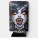Halloween can cooler. Female vampire with gold eyes and teeth and sparkles in her hair. Gold fangs, pale skin. Cool for Halloween or anyone who loves vampires.