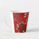 Latte Mug featuring Vincent van Gogh’s oil painting Almond Blossoms (1890) in red. An almond tree blossoms white flowers in front of a red sky. A great gift for fans of impressionism and Dutch art.
