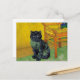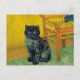 Poscard featuring a black cat in the style of Van Gogh! This black kitty sits by a chair upon a green floor against a background of Starry Night decoration. A fabulous gift for cat lovers and Dutch art collectors!