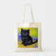Tote Bag featuring a black cat in the style of Vincent van Gogh! This blue eyed darling sits adorably with purple flowers against a green wall and yellow table. A wonderful gift for cat lovers and Dutch art collectors!