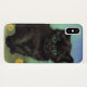 iPhone Case featuring a black cat in the style of Van Gogh! A fluffy black kitty sits next to yellow flowers against a green and blue background. A fun gift for cat lovers and Dutch art collectors!