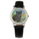 Watch featuring a black cat in the style of Van Gogh! A fluffy black kitty sits next to yellow flowers against a green and blue background. A fun gift for cat lovers and Dutch art collectors!