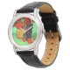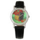 Watch featuring a black kitten in the style of Van Gogh! A cute kitty sits beside a vase with red flowers. A green wall and floor give a spring ambience. A fantastic gift for cat lovers and Dutch art collectors!