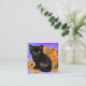Enclosure Cards featuring a black Van Gogh kitten! This fluffy kitty is sitting next to sunflowers in front of a purple background. A wonderful gift for cat lovers and Dutch art collectors!